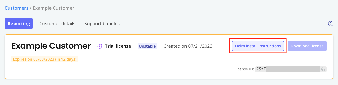 • The customer must have the Existing Cluster (Helm CLI) install type enabled. For more information about enabling install types for customers in the Vendor Portal, see Manage Install Types for a License.